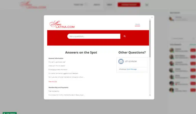 El tiempo de respuesta del equipo de soporte es rpido y eficiente, lo que garantiza una pronta resolucin de los problemas de los usuarios. Adems, hay una til pgina de preguntas frecuentes disponible para las preguntas ms frecuentes. Este completo sistema de soporte diferencia a AmoLatina de otras alternativas, brindando asistencia confiable a sus usuarios.